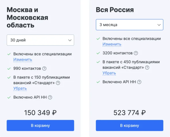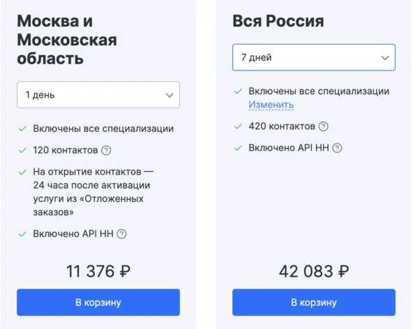 К тому времени, когда работодатели поймут, что количество целевых откликов катастрофически малое, в поисках подходящих кандидатов они могут начать использовать холодные звонки по базе данных, что в текущих условиях становится довольно затратным процессом. Расценки на hh.ru приведу ниже.