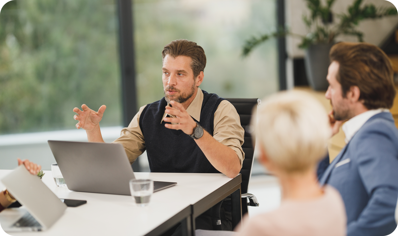 Для обсуждения стратегии, посещения совещания или знакомства с руководителями
