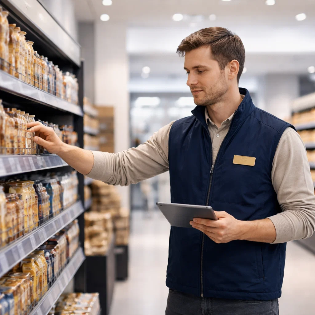 Стационарный сотрудник отслеживает ротацию товаров, сроки годности и корректность размещения POS-материалов. Это особенно актуально для крупных сетей, где объём ассортимента требует постоянного внимания и системного контроля.